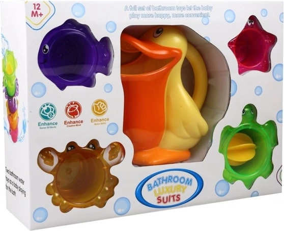 Ein Badespielzeug, das Kinder und Eltern begeistert. Der Pelikan mit praktischem Griff schöpft und gießt Wasser, während die vier bunten Tierbecher zum Schöpfen, Umfüllen und Ineinanderstapeln verwendet werden können. Dank sicherem Kunststoff, glatten Kanten und verspieltem Design ist das Set perfekt für tägliche Wasserabenteuer.