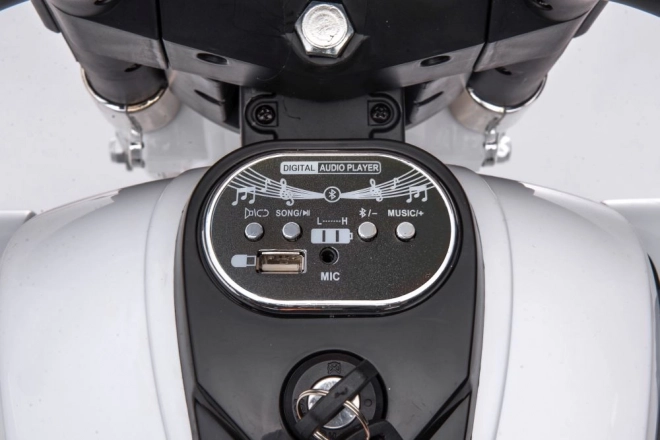 Mit dabei sind eine hintere Staubox für Kleinigkeiten, ein übersichtliches Armaturenbrett mit Schlüssel sowie Multimedia-Eingänge (USB, Mikrofon) für Lieblingslieder. Das Dreirad besteht aus hochwertigem Kunststoff, ist pflegeleicht und eine hervorragende Wahl für den täglichen Spielspaß.