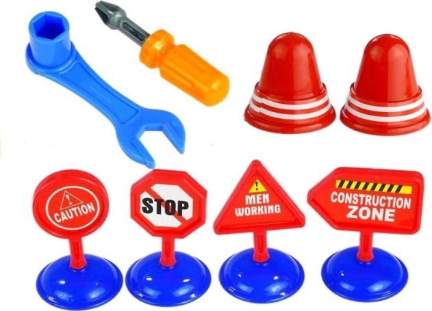 Das Set enthält Figuren, Werkzeuge und Verkehrsschilder, die den Kindern spielerisch die Welt der Reparaturen und grundlegende Werkzeuge näherbringen.