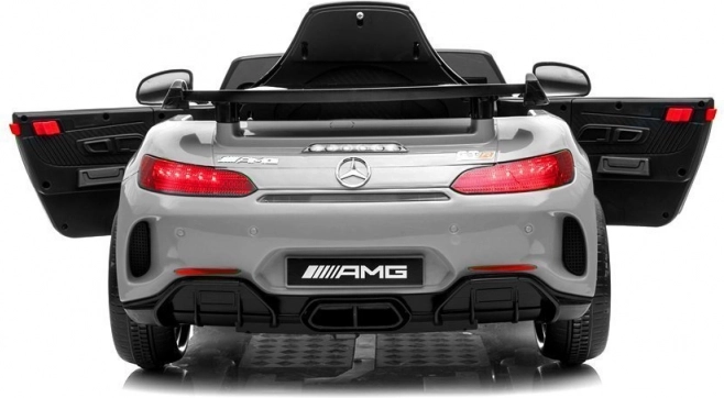 Das lizenzierte Auto MERCEDES GT R überzeugt mit muskulöser Silhouette, Sportspoiler und ikonischem Kühlergrill. Dank der lackierten Oberfläche in glänzendem Silber wirkt es wie ein echter Sportwagen. Der Innenraum bietet ein beleuchtetes Armaturenbrett, ein Lenkrad mit Hupe und eine übersichtliche Bedienung.