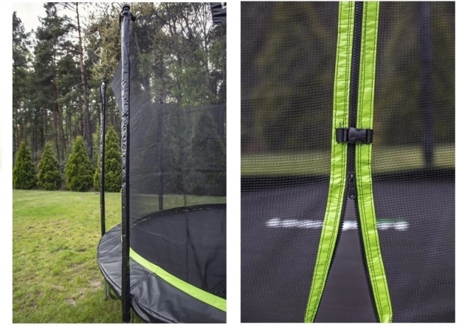 Ein Netz mit einer Höhe von ca. 180 cm, verstärkte Pfosten und eine feste Befestigung schützen vor dem Sturz außerhalb der Sprungfläche. Kinder und Erwachsene genießen das Springen mit maximaler Sicherheit.