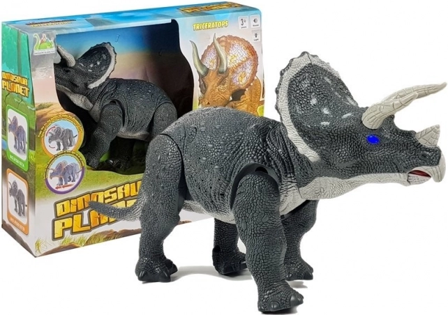 Lernen Sie die perfekte Nachbildung eines großen Triceratops-Dinosauriers kennen, der vor 125-100 Millionen Jahren lebte. Dieses Modell ist mit einem ausgeprägten Schädel und massiver Muskelstruktur konzipiert. Angetrieben von drei "AA" 1,5 V Batterien beginnt der Dinosaurier beim Einschalten zu gehen, zu brüllen und den Kopf zu bewegen, was ein realistisches Erlebnis durch Lichteffekte wie Augenblinken bietet.