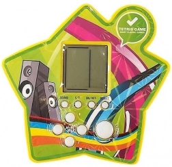 Dieses tragbare elektronische Spiel mit LCD-Display und weißen Bedientasten bietet das klassische Tetris-Erlebnis. Drehen Sie fallende Formen, füllen Sie Reihen und beobachten Sie, wie mit jeder gelöschten Linie Tempo und Schwierigkeit steigen. Der nächste Stein wird voraus angezeigt, sodass Sie strategisch planen können.