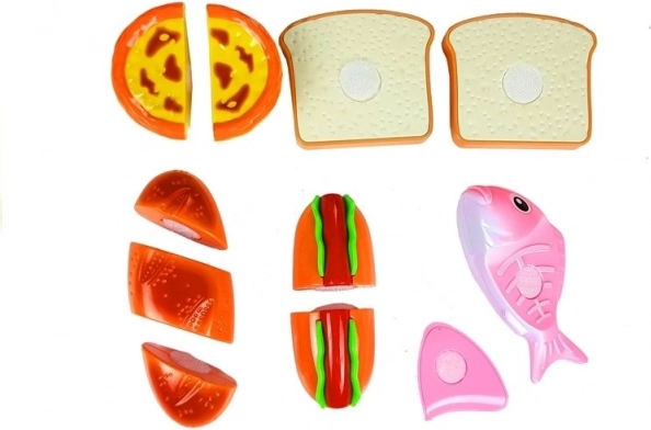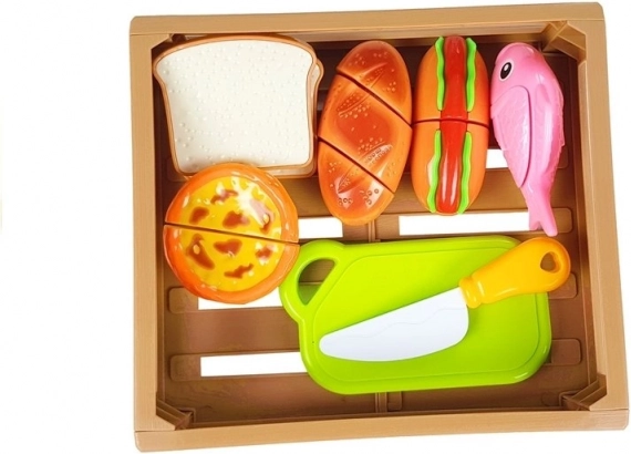 Brot, Toastscheiben, Hotdog, Fisch, Küchlein/Cupcake, Brettchen, Messer, Kunststoffkiste