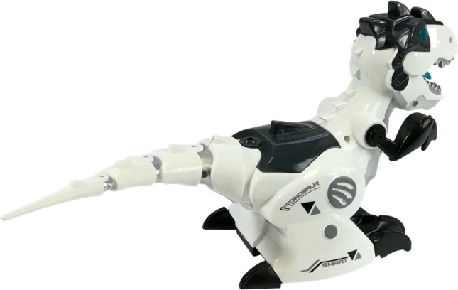 Entdecken Sie die aufregende Welt der Dinosaurier mit dem mechanischen, ferngesteuerten T-Rex. Der Dinosaurier verfügt über auffällige Leuchtelemente und gibt realistische Geräusche von sich, die die Spielatmosphäre intensivieren. Dank robuster Konstruktion und der modernen Kombination aus Weiß, Schwarz und Grau wirkt er wie ein futuristisches Wesen.
