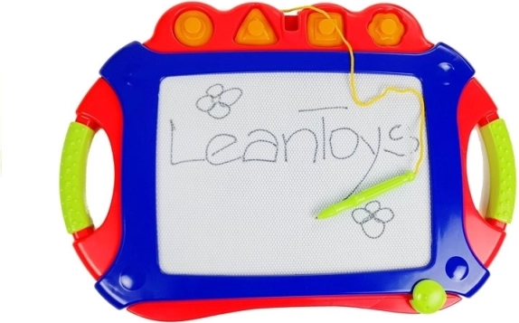 Die Tafel hat ein großes Display, das es ermöglicht, bunte, unglaublich originelle Bilder zu erstellen, die sich leicht löschen lassen. Unter der Oberfläche des Bildschirms befinden sich Eisenfeilspäne, die nach dem Zeichnen mit dem beiliegenden Spezialstylus das vom Kind erstellte Muster bilden. Die beiliegenden Schablonen erleichtern das Spielen – auf dem Bildschirm kann ein Muster erscheinen, das das Kind nach eigenen Vorstellungen aus dekoriert.