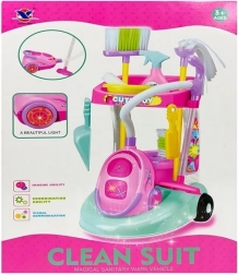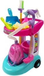 Der Wagen ist aus qualitativem und haltbarem Kunststoff gefertigt, was eine lange Lebensdauer und Sicherheit beim Spielen garantiert. Das Spielzeug ist so konzipiert, dass es für kleine Kinder geeignet ist, und alle Teile sind perfekt an ihre Höhe und Fähigkeiten angepasst. Das Set umfasst verschiedene Elemente: Staubsauger, Wischmopp, kleinen und großen Besen, Eimer mit Aufsatz und große Kehrschaufel.