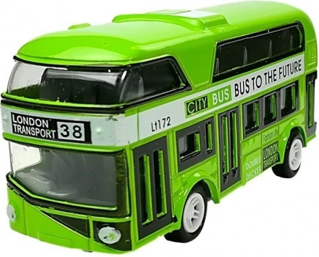 Der Miniatur-Doppeldeckerbus mit Aufziehmotor begeistert kleine Fahrer und Sammler. Realistische Ausführung, robustes Material und ein detailgetreues Interieur mit Sitzen und Lenkrad sorgen für viel Spaß und Lernmomente über die echte Welt. Zur Auswahl stehen 4 markante Farben (Rot, Grün, Rosa, Blau). Einfach den Bus nach hinten aufziehen und er fährt von selbst los!