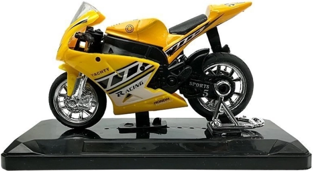Realistisch gestaltetes Sportmotorrad im Maßstab 1:18 kombiniert Metall und Kunststoff für lange Haltbarkeit und eine tolle Optik. Das detailreiche Design mit verchromten Rädern und Rennaufklebern macht es zu einem attraktiven Highlight fürs Kinderzimmer oder die Modellsammlung.