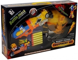 Zum Set gehört eine robuste Kindermaske mit futuristischem Design. Fördert die Fantasie und ergänzt das Action-Kostüm.