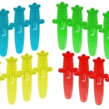 Das Spiel bietet zwei Spielmodi: den Klassiker mit herausspringendem Piraten und eine Variante mit Glücksrad – die Spieler erfüllen Aufgaben oder ziehen Schwerter in der entsprechenden Farbe und sammeln Punkte. Dank der bunten Komponenten und klaren Regeln ist das Spiel geeignet für Kinder ab 3 Jahren.
