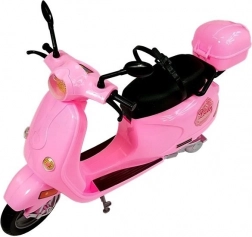 Der rosa Roller ist detailliert mit realistischen Elementen wie Spiegeln und einem Stauraum ausgearbeitet. Dank der stabilen Konstruktion und der Stützen ist er beim Spielen stabil.