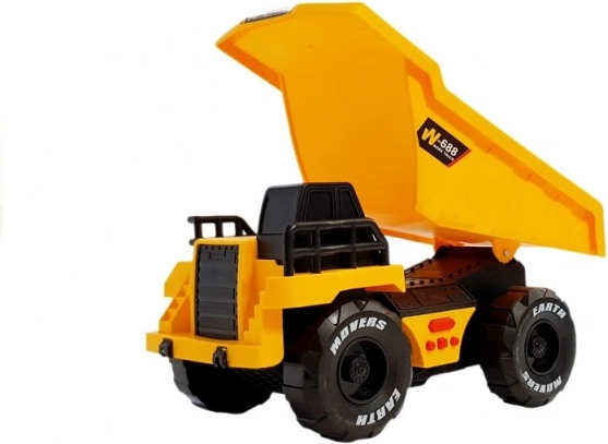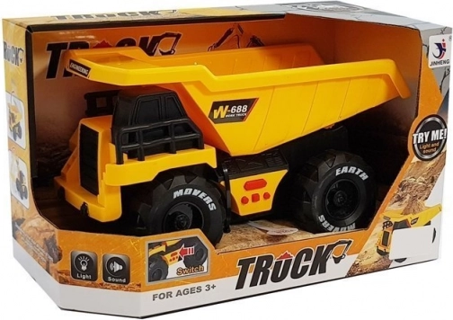 Das Fahrzeug hat einen Reibungsantrieb – zurückziehen, loslassen und die Fahrt beobachten. Am Chassis finden Sie 4 Tasten mit Sounds (Hupe, Heben der Mulde, Rückwärtsfahren und weitere) sowie vordere Lichter für noch mehr Effekt. Dank sicherer Materialien und der Zertifizierung CE/EN 71 ist es ideal für Kinder ab 3 Jahren.