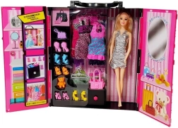 - Umfangreiche Ausstattung: Kleider, Schuhe, Handtaschen, Kleiderbügel und weiteres Zubehör für kreative Kombinationen.