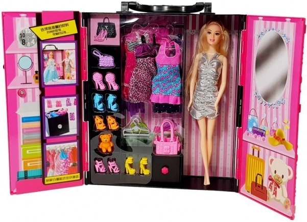 Der rosa Kofferschrank für Puppen verwandelt jedes Spiel in eine Modenschau. Aufklappbare Schrankflügel, durchdachte Innenaufteilung und zahlreiche Accessoires ermöglichen Kindern unendliche Stylings. Die Puppe hat langes, dichtes blondes Haar und ein dezentes Make-up – der Spaß mit Kämmen und Umziehen kann beginnen.