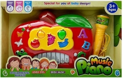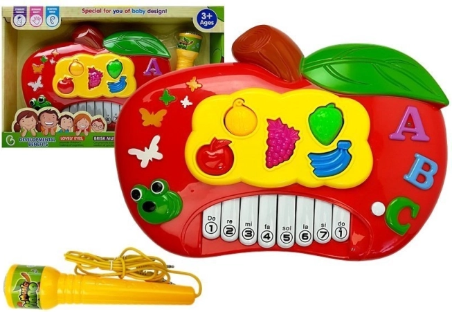 Das elektronische Apfel-Klavier ist das ideale Spielzeug für die ersten Schritte in die Welt der Musik. Kinder können auf 8 Tasten spielen, in das mitgelieferte Mikrofon singen und dank des beiliegenden Klinke-zu-Klinke-Kabels Lieblingslieder vom Telefon abspielen. Das farbenfrohe Design und die hochwertige Verarbeitung unterstützen Kreativität und Spielfreude.
