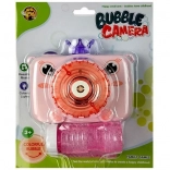 Einfach Flüssigkeit einfüllen, den Knopf drücken und die Kamera pustet viele Seifenblasen – perfekt für Spiele im Freien und für Feiern.