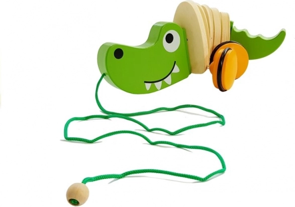 Holz-Zugspielzeug in Form eines Krokodils ist das ideale Spielzeug zur Förderung der motorischen Fähigkeiten von Kindern. Es ist aus hochwertigem Holz gefertigt und widerstandsfähig gegen Beschädigungen.