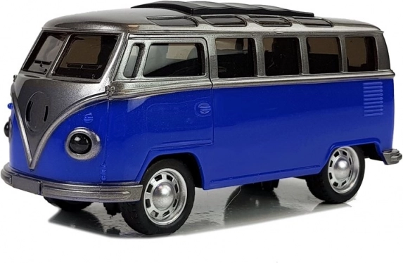 Der beliebte Retro-Bus in blau ist ein perfektes Geschenk für kleine Verkehrsfreunde und nostalgische Erwachsene. Realistische Details, Gummireifen und ein widerstandsfähiges Kunststoffgehäuse sorgen für stundenlangen, sicheren Spielspaß. Dank des Friktionsantriebs genügt es, den Bus nach hinten zu ziehen und loszulassen – er fährt von selbst.