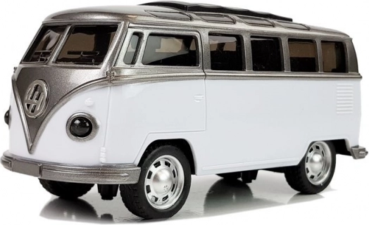 Entdecken Sie den Spielspaß mit dem weißen „Ogórek“-Busmodell, das durch präzise Verarbeitung und realistische Details überzeugt. Dank des Schwungrad- (Pull-Back-) Antriebs fährt der Bus nach dem Zurückziehen von selbst los, während Licht- und Soundeffekte das Spielerlebnis zusätzlich verstärken.