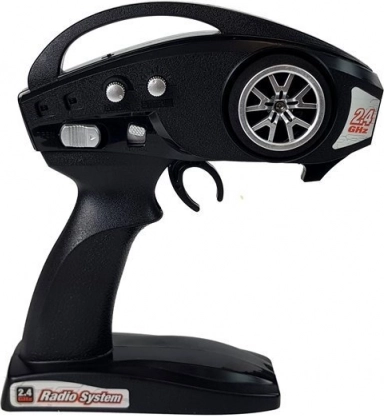 Ergonomischer Sender mit 2,4-GHz-System für präzise Lenkung und bis zu 80 m Reichweite ohne Störungen.