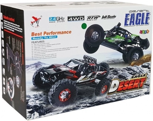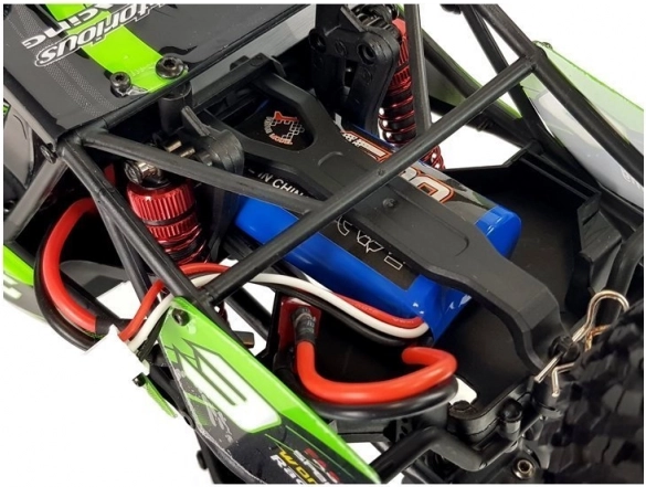 Leistungsstarker RC-Geländebuggy im Maßstab 1:12 mit 4x4-Antrieb, Geschwindigkeiten bis zu 30 km/h und robuster Konstruktion für anspruchsvolles Terrain. Große Offroad-Reifen mit Spezialprofil, unabhängige Radaufhängung an allen Rädern und zuverlässige 2,4-GHz-Steuerung bis zu 100 m sorgen für hervorragende Stabilität und Fahrspaß. Er wird von einem 7,4 V 1500 mAh Li-Ion-Akku betrieben und bietet bis zu 15 Minuten Fahrzeit.