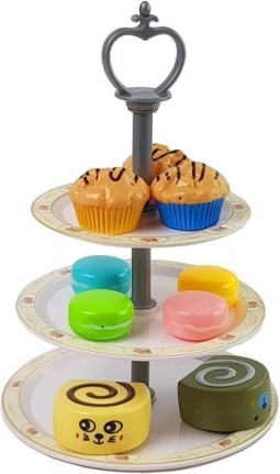 Dieses wunderschöne Teeservice in Weiß-Creme mit rosafarbenem Motiv ist ideal für Kinder, die gerne in Erwachsenenrollen schlüpfen. Das Teeservice fördert beim Spielen Fantasie, eigenständiges Denken und Geschicklichkeit und sorgt so nicht nur für Spaß, sondern auch für einen pädagogischen Mehrwert. Die Verpackung enthält insgesamt 39 Teile – Tassen, Teller, Dessertteller, eine Kanne mit Deckel, ein Tablett, einen Etagerenständer für Kuchen, verschiedene Süßigkeiten wie Gugelhupfe, Törtchen, Macarons sowie Löffel, einen Tortenheber und Gabeln.