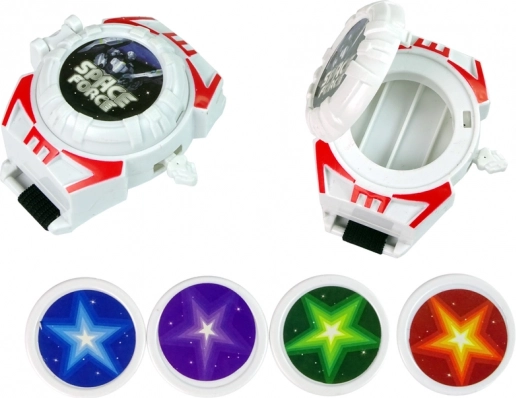 Der Disc-Schießer kann am Handgelenk getragen werden und wird verwendet, um mit bunten Scheiben zu schießen, was dem Spiel eine zusätzliche Spannungsebene verleiht.