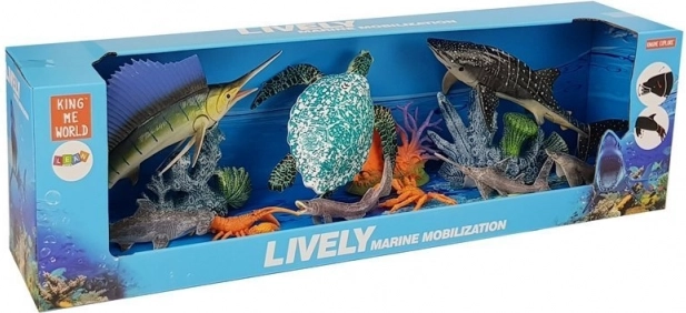 Das Set besteht aus 10 Teilen, darunter Korallen, ein Flusskrebs, eine Krabbe, ein Hammerhai, ein Rochen, ein Sägefisch, eine Schildkröte und weitere. Drei größere Meerestiere haben bewegliche Teile (Schildkröte, zwei Fische). Ihr Kind kann so deren Flossen, Kopf und Schwanz bewegen. Damit beginnt sein Abenteuer beim Durchschwimmen der Tiefen des Ozeans.