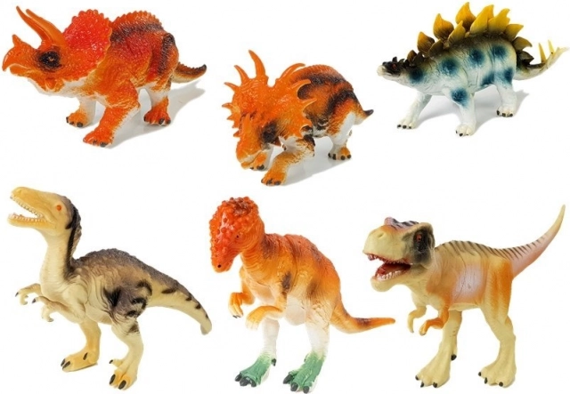 Dinosaurierfiguren-Set 6 Stück ist ideal für Kinderfantasie und Bildung. Es enthält verschiedene Arten wie Tyrannosaurus, Stegosaurus oder Triceratops. Die Spielzeuge sind aus sicherem Gummi gefertigt, leicht und einfach in kleinen Händen zu halten.
