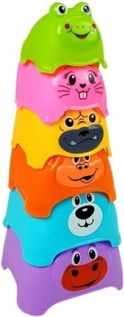 Die bunte Pyramide ist ein Spielzeug, das hervorragend die Entwicklung Ihres Kindes unterstützt. Es enthält Bauklötze in verschiedenen Farben, die mit Tiermotiven bedruckt sind. An der Spitze der Pyramide befindet sich der kleinste Block in Form eines Frosches. Die Bauklötze sind aus sicherem, ungiftigem Material hergestellt, das robust und langlebig ist.