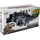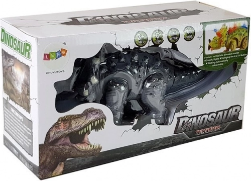 Elektronischer Dinosaurier Triceratops ist ein realistisch gestaltetes Spielzeug, das an prähistorische Zeiten erinnert. Dieser Dinosaurier läuft, macht Geräusche und leuchtet, was ihn zu einem faszinierenden Spielzeug für alle kleinen Paläontologen macht. Das Spielzeug ist aus strapazierfähigem Kunststoff in grauer Farbe gefertigt, die dem natürlichen Aussehen echter Dinosaurier nahekommt.
