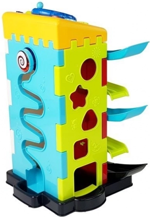 Kinder lernen, Formen zu erkennen, ein Auto auf einer Hindernisbahn zu manövrieren und mit interaktiven Elementen zu experimentieren. Dieses Spielzeug bietet verschiedene Spielmöglichkeiten, die die Entwicklung verschiedener Fähigkeiten unterstützen. Interaktives Lenkrad mit Ton- und Lichteffekten ermöglicht es Kindern, Richtungen zu lernen und ihre Vorstellungskraft durch das Nachspielen alltäglicher Situationen zu entwickeln.