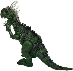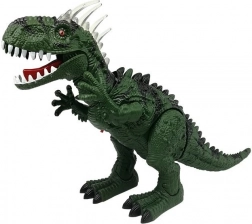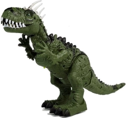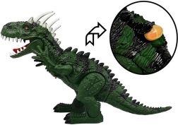 Reisen Sie zurück in die Zeit der Dinosaurier mit einem realistischen Tyrannosaurus, der sich selbstständig vorwärts bewegt, den Kopf dreht, die Vorderläufe bewegt, das Maul öffnet und schließt und dabei authentische Brüllgeräusche von sich gibt. Der grüne Körper mit schwarzen Details, markanten Zähnen und Schuppen mit mehrfarbiger Beleuchtung verstärkt den Eindruck eines echten prähistorischen Raubtiers.