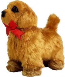 Erfüllen Sie den Kindertraum vom eigenen Haustier. Der interaktive Hund mit weichem braunen Fell reagiert auf Streicheln – er bellt, wedelt mit dem Schwanz und bewegt den Kopf. Bei Druck auf den Bauch läuft er nach vorn, bellt erneut und spielt eine freundliche Melodie. Dank seines realistischen Aussehens mit dunkelbraunen Augen und roter Schleife schließen ihn Kinder schnell ins Herz.