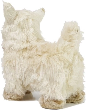 Dieser interaktive Hund erinnert täuschend echt an einen Chihuahua – mit weichem cremefarbenem Fell, markanten dunklen Augen und einer eleganten roten Schleife. Er reagiert auf Streicheln und Berührungen: bellt, bewegt Kopf und Schwanz und nach Druck an der Seite läuft er nach vorne mit fröhlicher Melodie. Er ist kuschelweich, sicher und bereit, der beste Freund Ihres Kindes zu werden.
