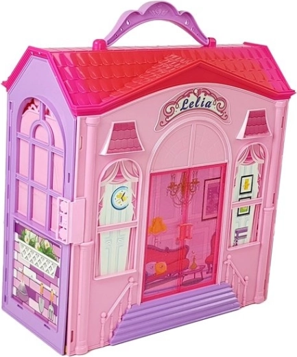 Faltbares blondes Puppenhaus mit Zubehör: Küche, Toilette, Schlafzimmer im Koffer