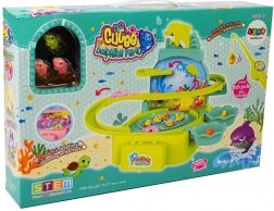 Das Set umfasst Delfine, Entchen und Fischlein, zwei Aquarien, Angelruten, Teile der Rutsche sowie Aufkleber – alles für kreative und langanhaltende Unterhaltung.