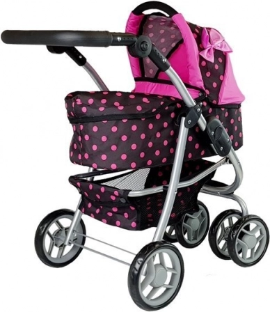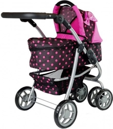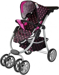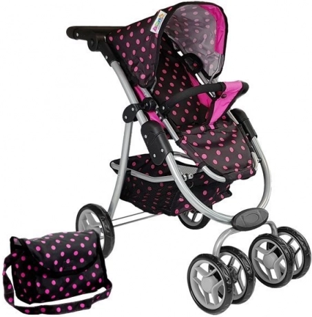 Der Puppenwagen kombiniert Spiel und Lernen und fördert so die Entwicklung von Empathie und verantwortungsvollem Verhalten bei Kindern. Elegantes schwarzes Design mit rosa Punkten erinnert an echte Kinderwagen und regt kreatives Spielen an. Die Konstruktion aus robusten Aluminiumrohren und Kunststoffverbindungen garantiert Langlebigkeit und eine stabile Fahrt.