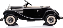 Stilvoller elektrischer Oldtimer für Kinder, inspiriert von der Ikone Mercedes-Benz 540K, begeistert mit authentischem Retro-Design, hochwertiger Verarbeitung und sicherem Fahrverhalten. Bietet eine Original-Lizenz von MERCEDES-BENZ, chromierte Details, LED-Lichter, einen funktionalen öffnenden Kofferraum und eine bequeme Sitzbank aus weichem Eco-Leder. Leistungsstarke Motoren 4×45 W, eine 12 V 10 Ah Batterie und ein sanftes Anfahren sorgen für Komfort und Spaß; die Steuerung erleichtert eine 2.4G-Fernbedienung.