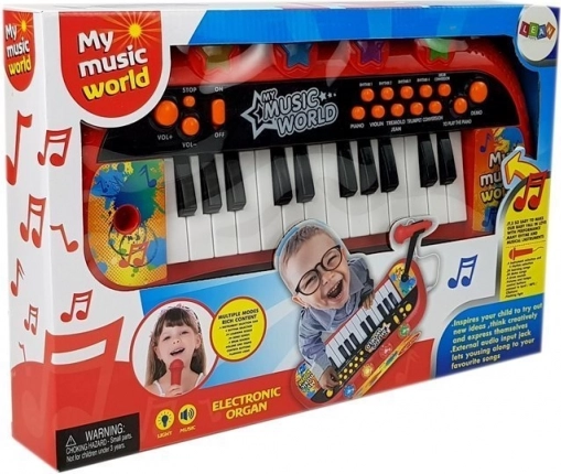 Die ideale Wahl für Jungen und Mädchen, die ihr erstes Konzert zu Hause geben möchten. Tasten im rot-schwarzen Design mit bunten Motiven fördern Kreativität, Hörwahrnehmung und Rhythmusgefühl. Dank des beiliegenden Mikrofons kann das Kind gleichzeitig singen und spielen, der USB/MP3-Eingang ermöglicht das Abspielen von Lieblingsliedern – perfekt für Karaoke zu Hause.