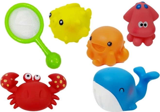 Badeset mit Wassertieren Delfin Krabbe Kescher