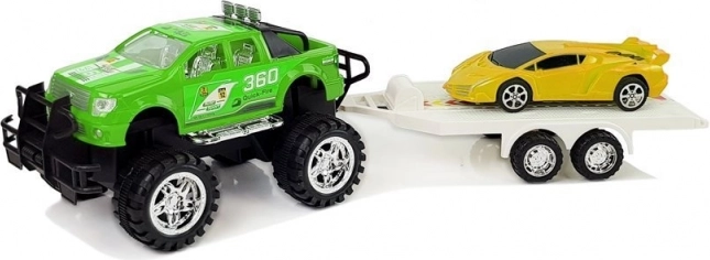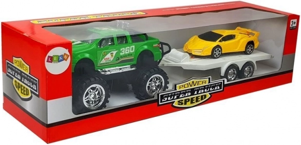 Das Auto mit Anhänger bietet unvergesslichen Spaß für Kinder, die gerne eigene Geschichten kreieren. Ziehen Sie das Geländewagen zurück und beobachten Sie, wie es dank des Aufziehmotors schnell über den Boden fährt. Der Anhänger kann leicht abgenommen werden und alle Fahrzeuge können eigenständig verwendet werden.