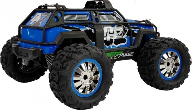 RC-Rennwagen in großartiger blau-schwarzer Kombination bietet eine Geschwindigkeit von bis zu 35 km/h und hervorragende Steuerfähigkeit dank der 2.4 GHz Technologie. Genießen Sie eine aufregende Fahrt im unebenen Gelände mit diesem langlebigen und robusten Fahrzeug.