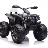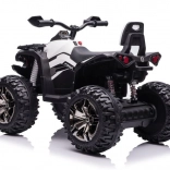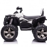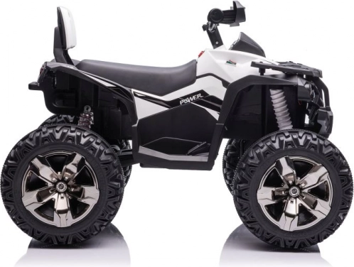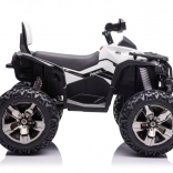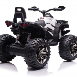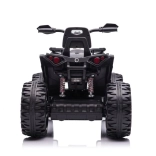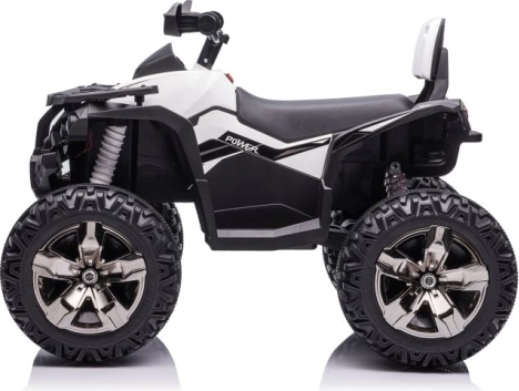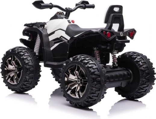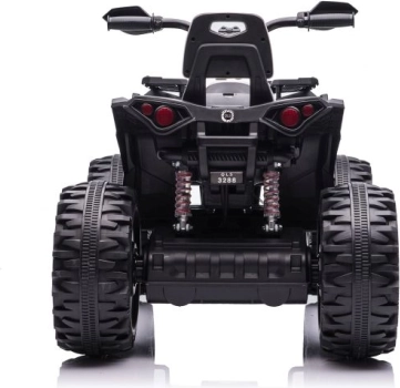 Das Quad ist mit großen robusten Reifen ausgestattet, die Stabilität und Sicherheit auf unebenem Gelände bieten.