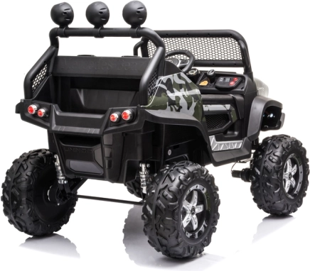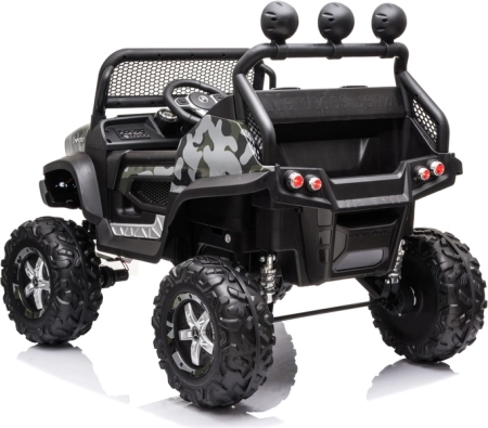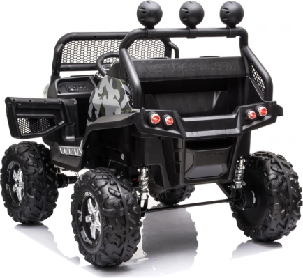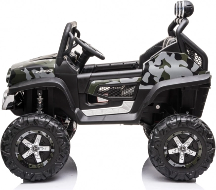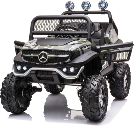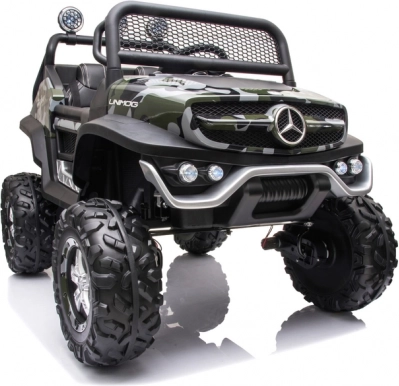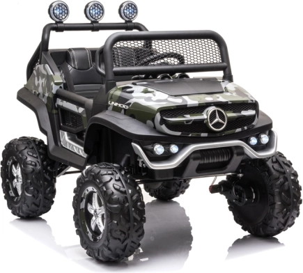Dieses elektrische Kinderauto Unimog S ist die perfekte Wahl für kleine Fahrer, die Abenteuer und Spaß an der frischen Luft suchen. Es bietet ein realistisches Aussehen dank der Tarnfarbe und interessanter Details: