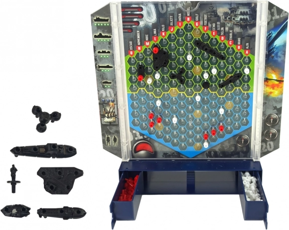 Das Spiel fördert logisches Denken und Intelligenz. Die Regeln sind trivial einfach – wer als Erster alle Schiffe des Gegners trifft, gewinnt die Runde. Zu Beginn setzt ihr euch gegenüber und richtet das Spiel so ein, dass der Gegner die Anordnung des anderen nicht sieht. Die Schiffe dürfen horizontal und vertikal, aber nicht diagonal platziert werden. Sobald das Spiel beginnt, darf die Position der eigenen Schiffe nicht mehr verändert werden. Gewinnt, wer als Erster alle gegnerischen Schiffe versenkt. Einen Fehlschuss markiert man mit einem weißen Zeichen auf dem eigenen Feld, anschließend ist der andere Spieler an der Reihe. Wird ein gegnerisches Schiff versenkt, übergibt man es dem Gegner, der es in den speziellen Behälter im Koffer legt. Gewonnen hat, wer als Erster alle gegnerischen Schiffe versenkt.