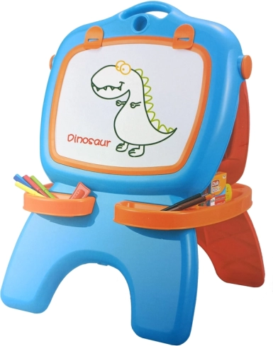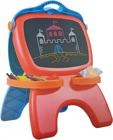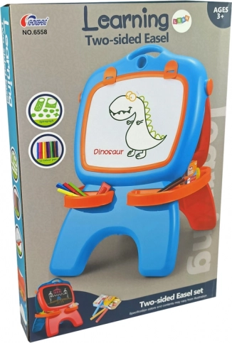 Diese beidseitige Kindertafel kombiniert eine magnetische, weiße Fläche für Marker und eine schwarze Kreidefläche, sodass Kinder täglich auf neue Weise schreiben, malen und lernen können. Das blau-rote Design passt in jedes Kinderzimmer, und die stabile Konstruktion mit Schubladen hält alle Utensilien griffbereit.