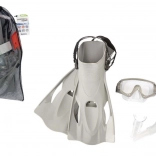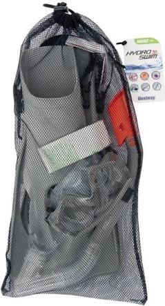 Die Flossen verfügen über eine weiche Fußtasche und einen verstellbaren Fersenriemen, wodurch sie sicher sitzen und nicht vom Fuß rutschen. Der Größenbereich 41–46 deckt die meisten erwachsenen Nutzer ab. Das gesamte Set ist leicht zu transportieren und sofort einsatzbereit für Ihre Wasserabenteuer.
