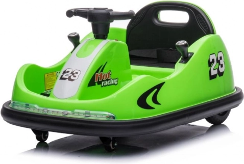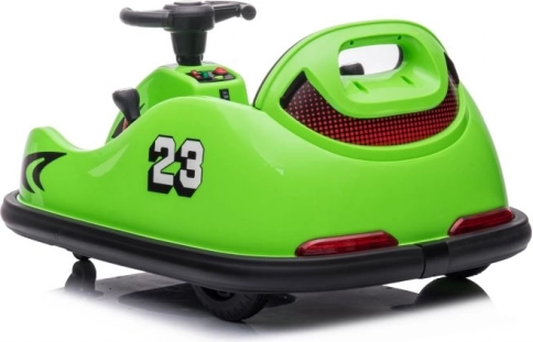 Dieses grüne Bumpercar mit der Nummer 23 und Rennakzenten ist ideal für die ersten Fahrerlebnisse. Die robuste Kunststoffkarosserie mit weichen Rändern hilft, Stöße zu dämpfen und erhöht die Sicherheit beim Spielen. Die einfache Steuerung über das Lenkrad und das übersichtliche Bedienfeld sind kindgerecht gestaltet.